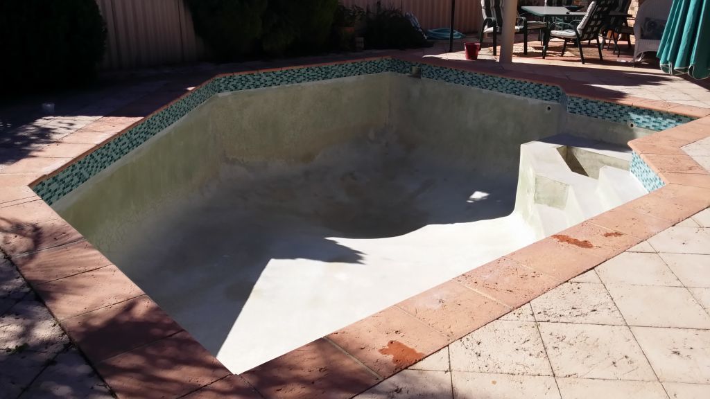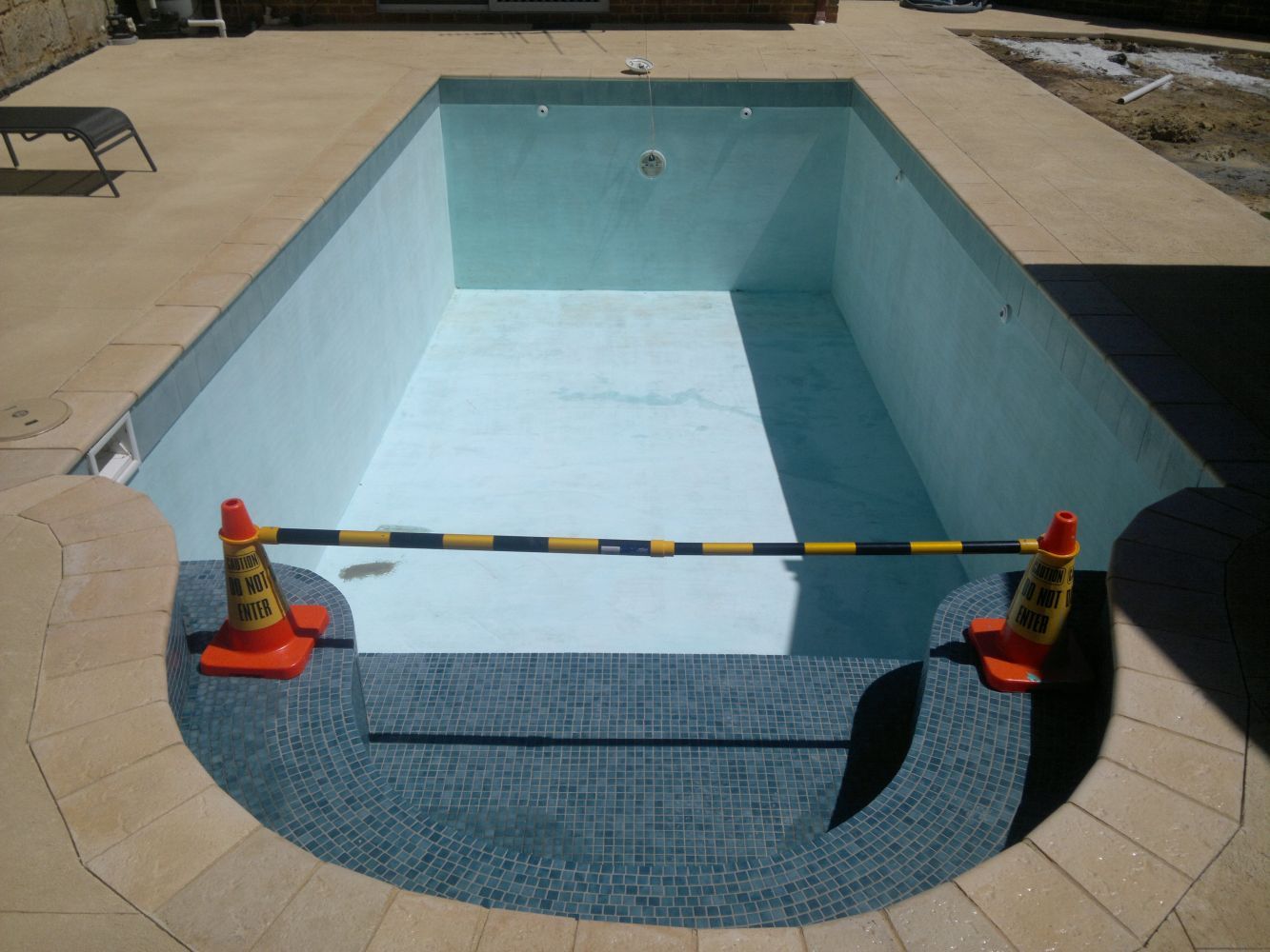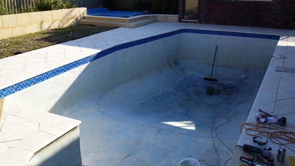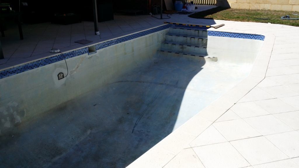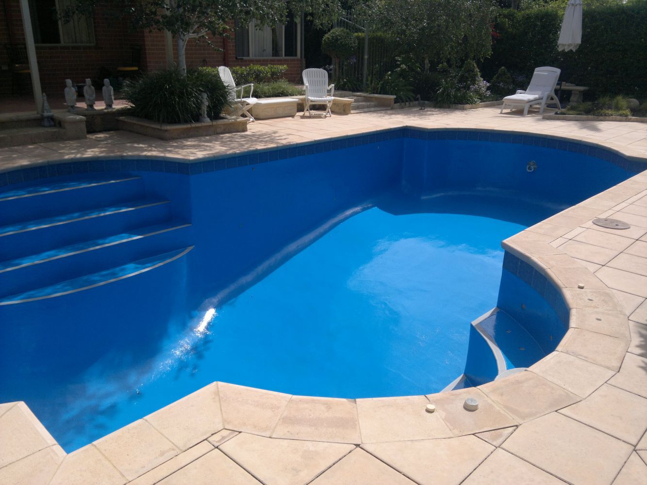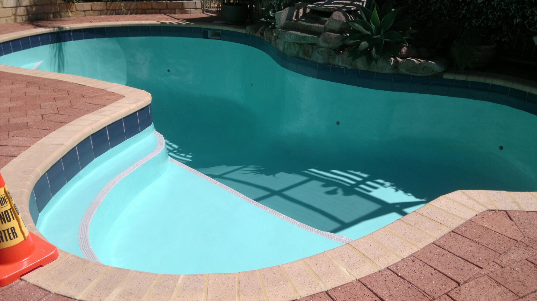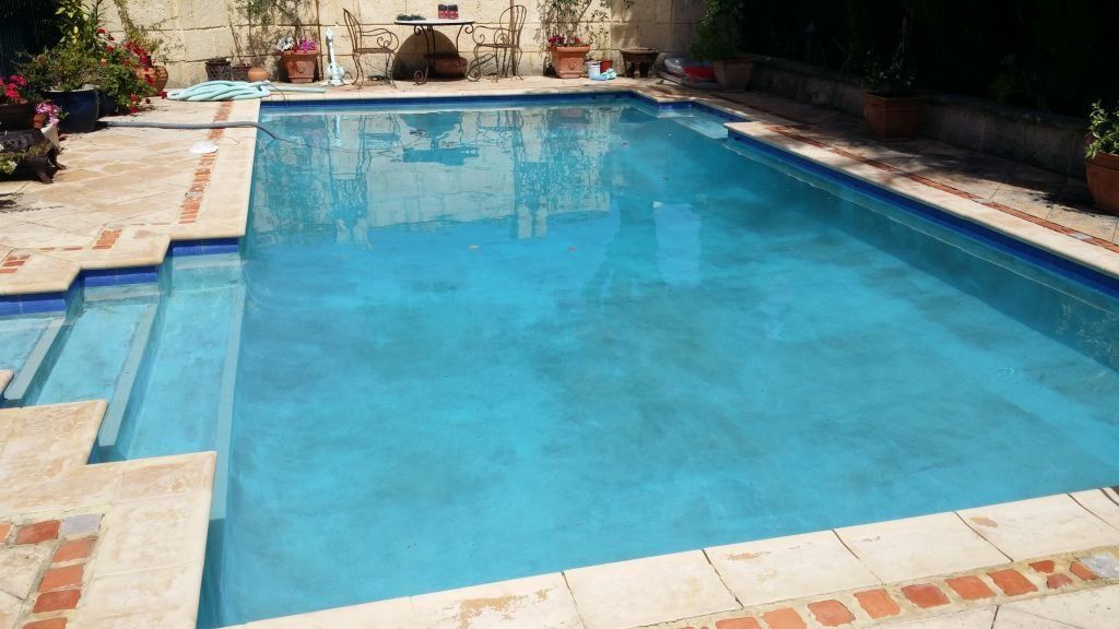 The above pool is coated in ADRIATICThis 1980 pool had no tile line. Bright & Blue installed a new mosaic tile line & coated the pool in ADRIATIC.