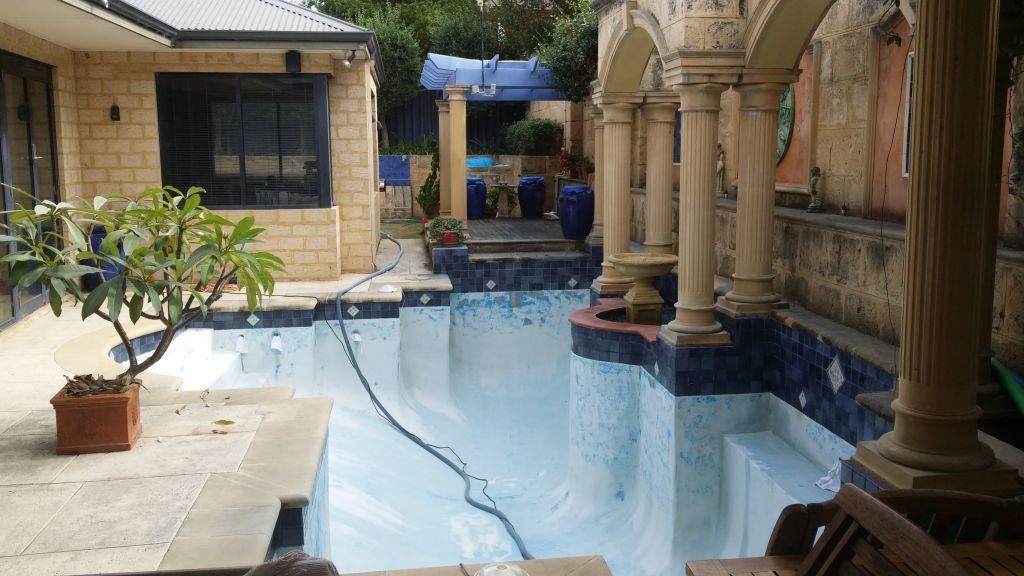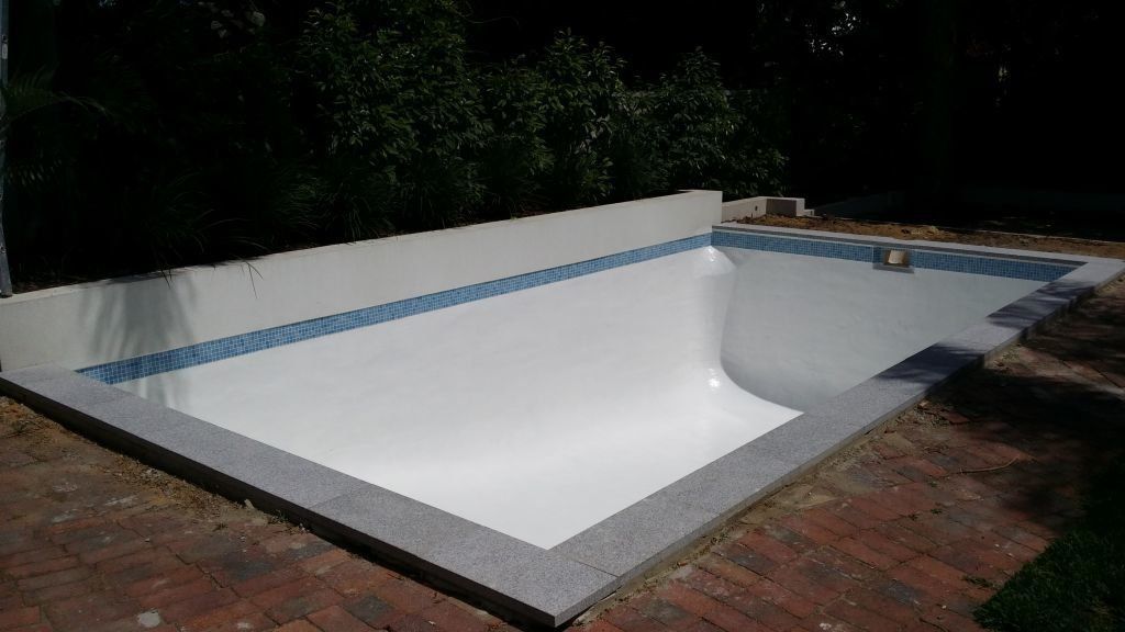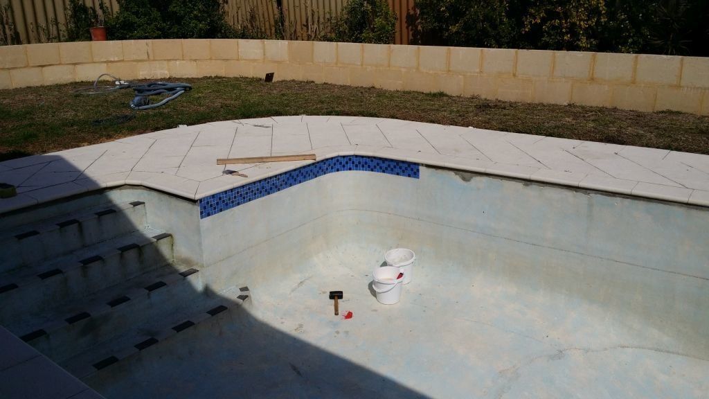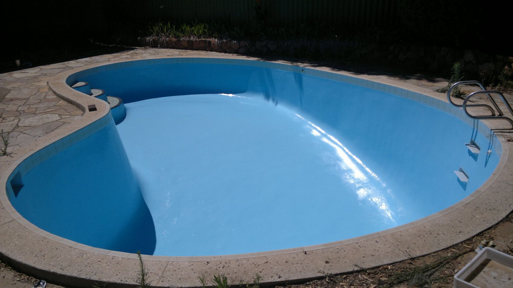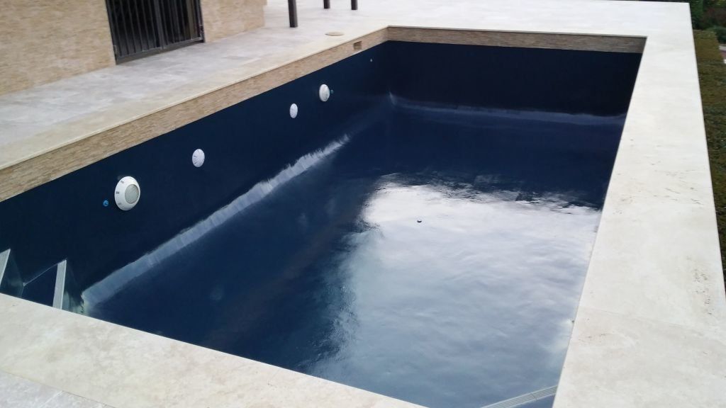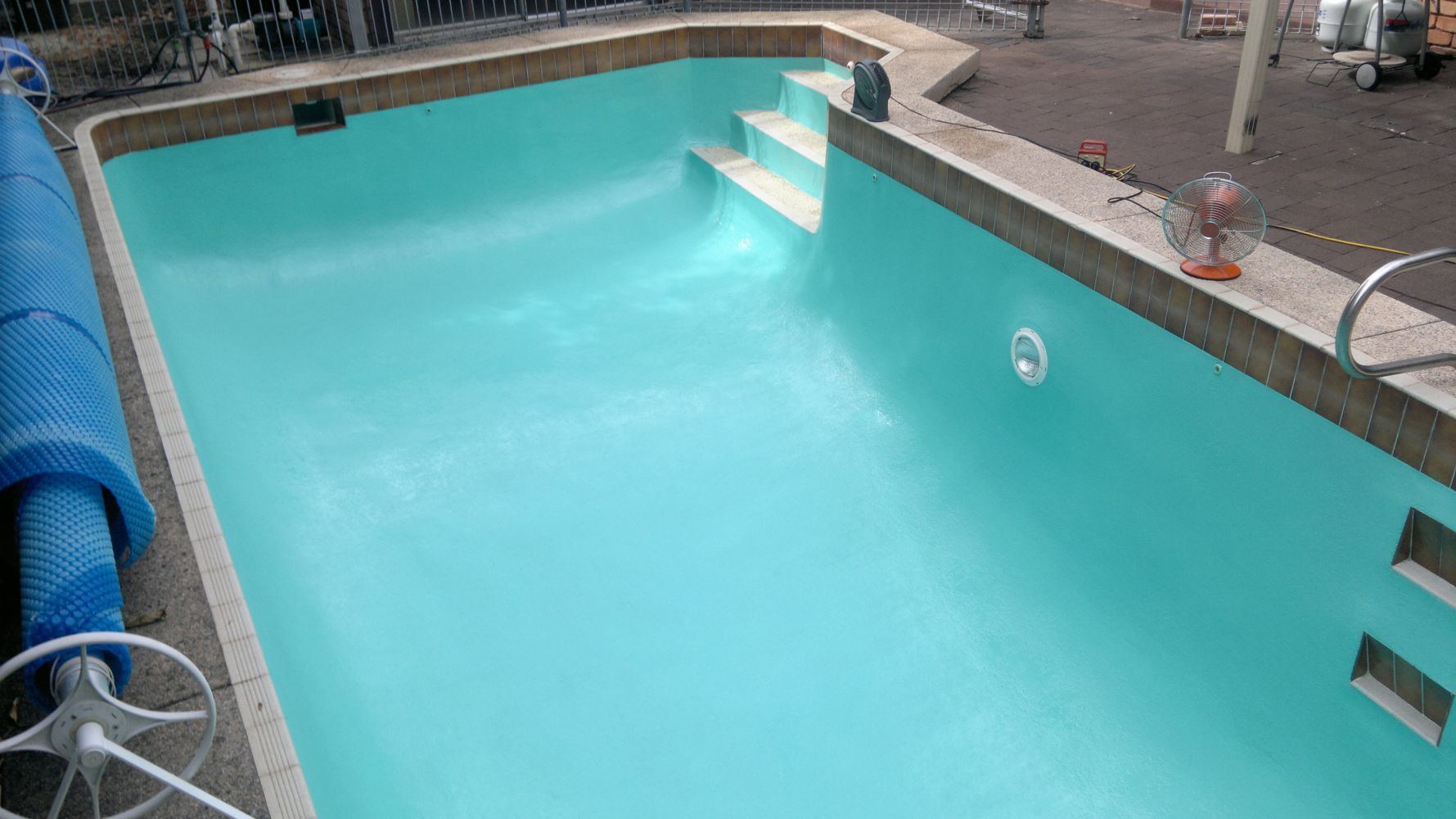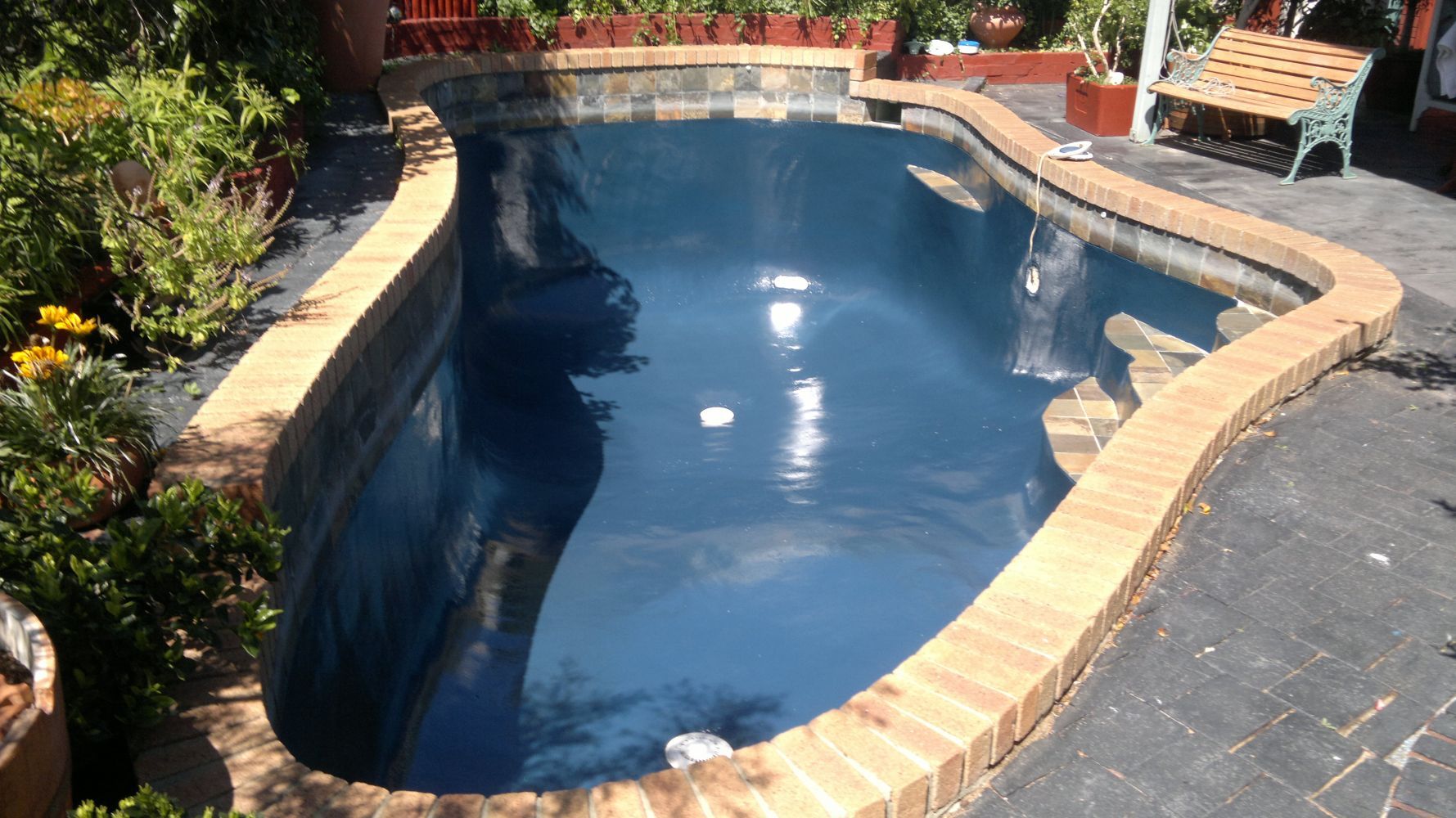 The above pool is coated in ADRIATICThis 1980 pool had no tile line. Bright & Blue installed a new mosaic tile line & coated the pool in ADRIATIC.