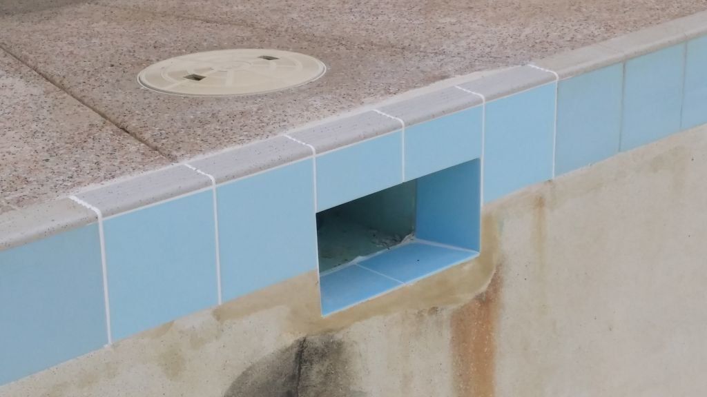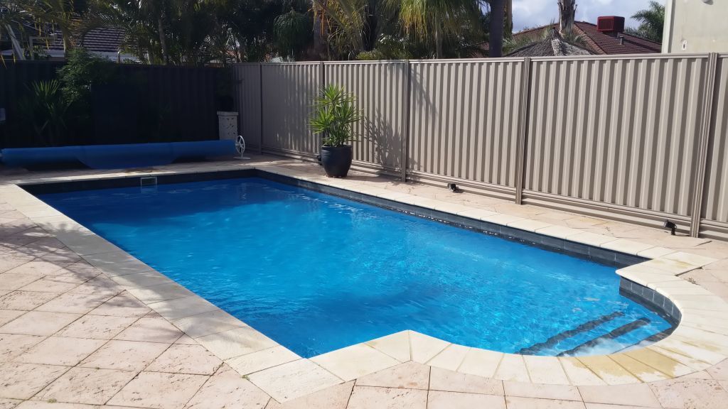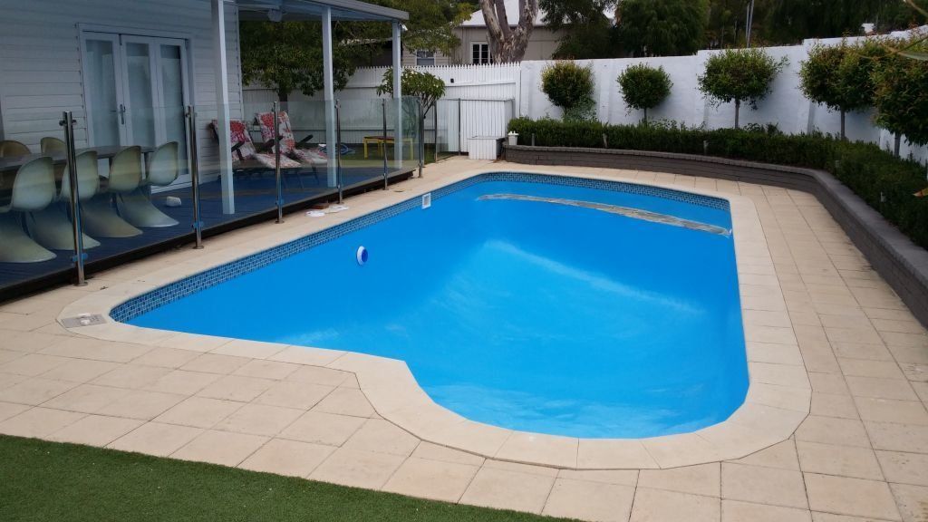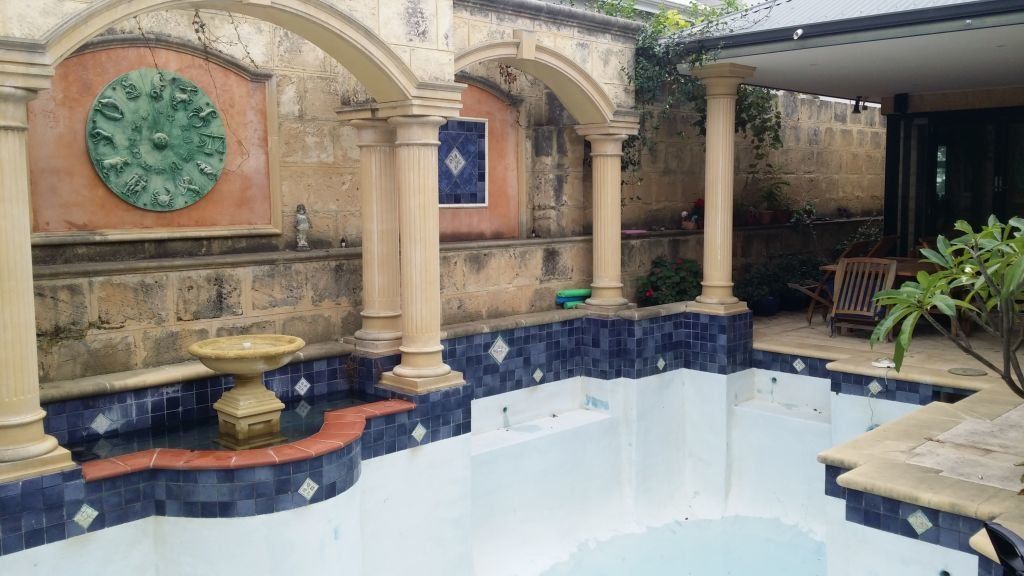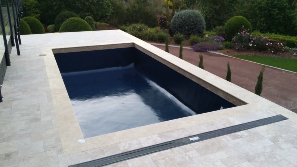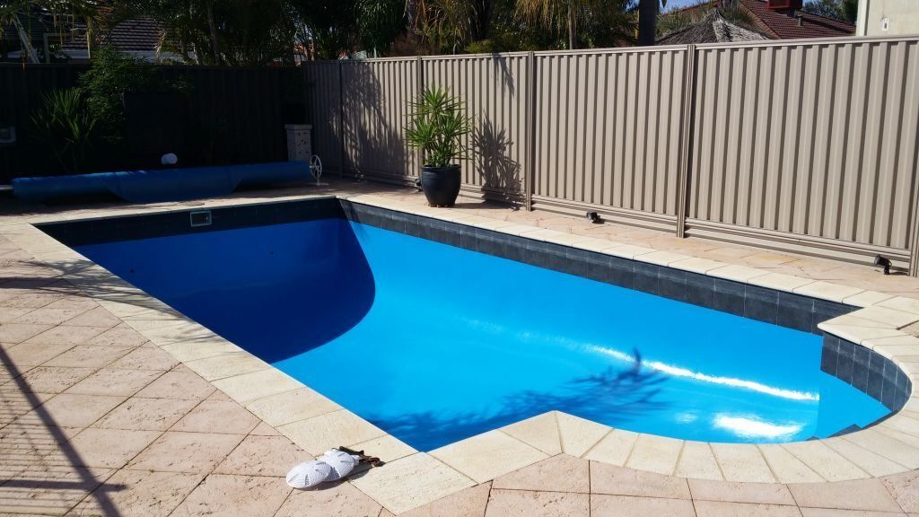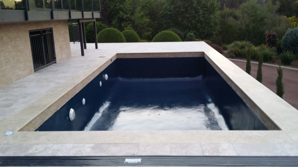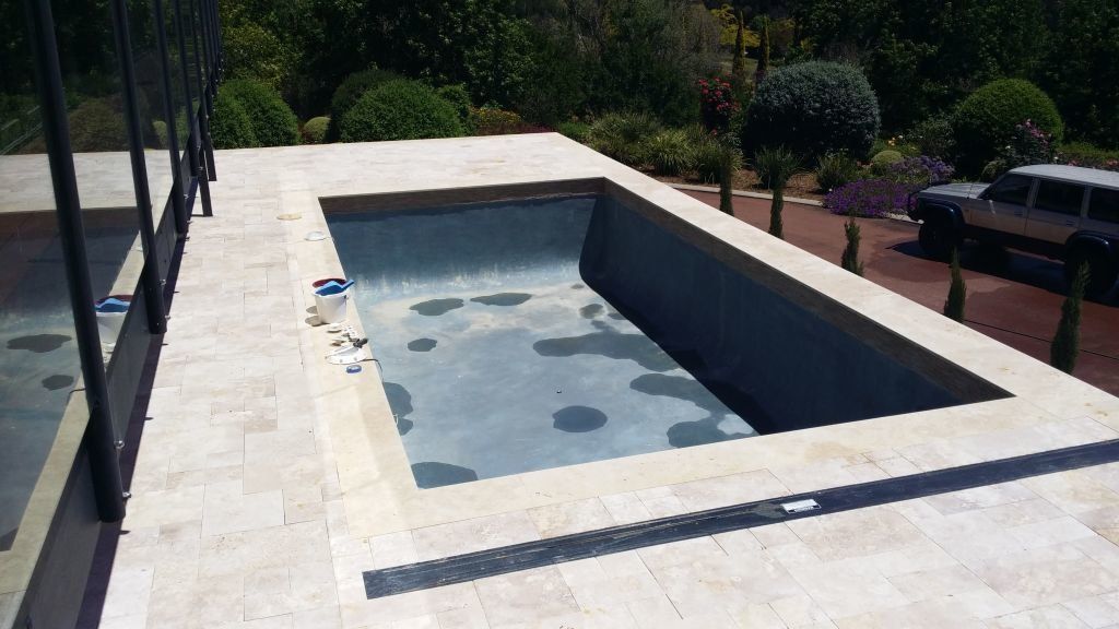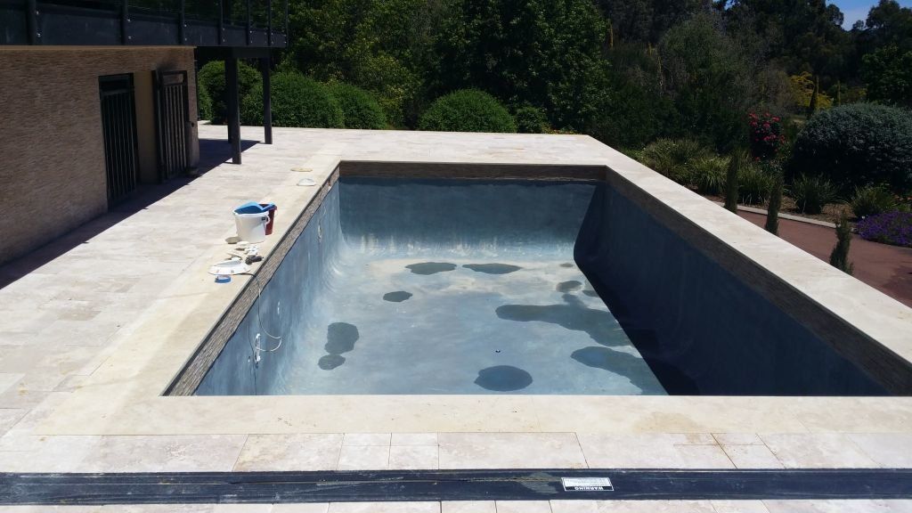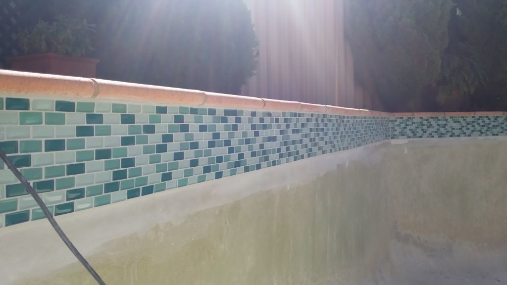 The above pool is coated in ADRIATICThis 1980 pool had no tile line. Bright & Blue installed a new mosaic tile line & coated the pool in ADRIATIC.
