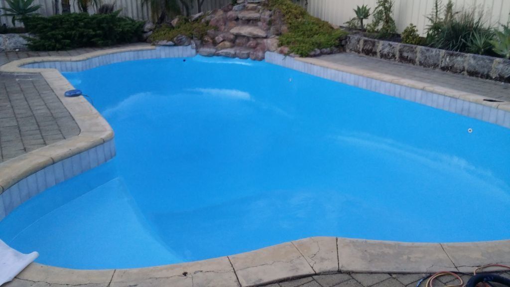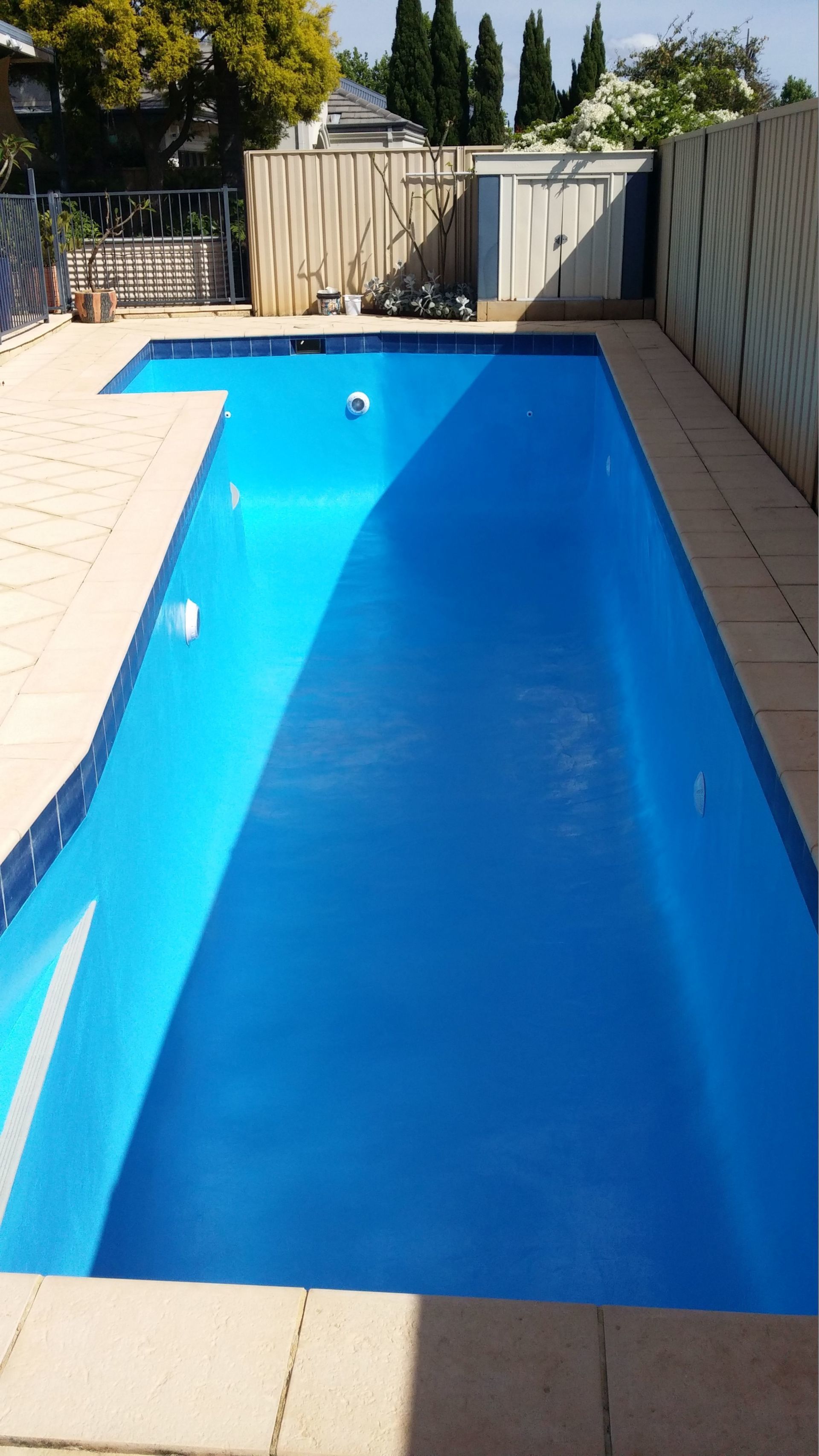 Bright and Blue Pool Painting take pride in transforming old and tired swimming pools to looking brand new in less than a week at affordable prices. Our product provides a beautiful luxury finish and once cured provides a smooth hard surface which is very easy to maintain. 25 colour choices are available from white to various shades of blue to even black if you are that adventurous.We can also repair and replace any broken water line tiles, or even replace your entire tile line with modern contemporary Mosaic Tiles..We are a family business and take pride in providing a no mess no fuss professional service.