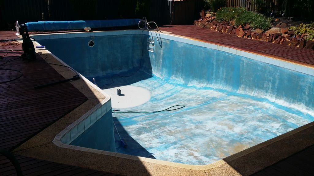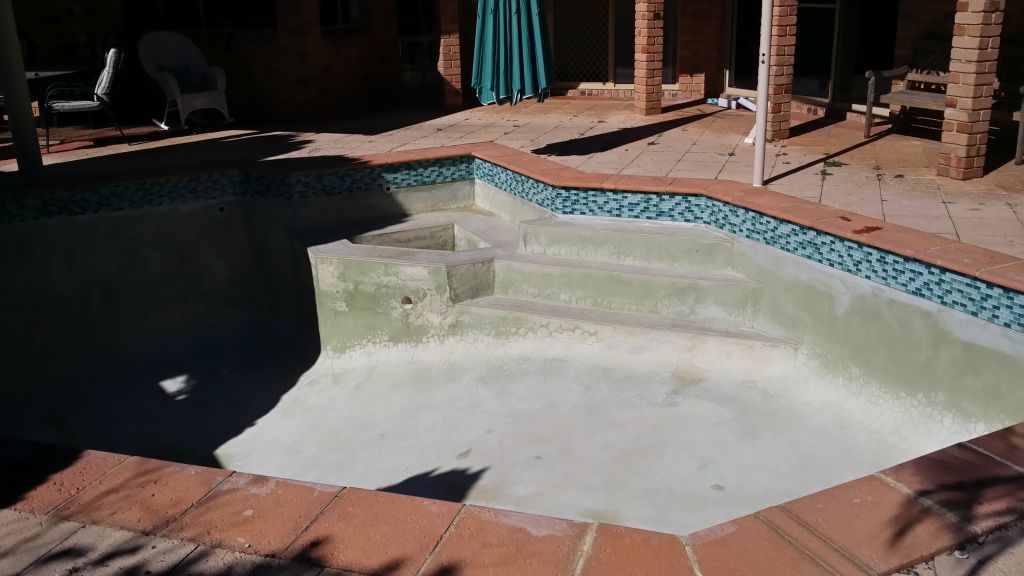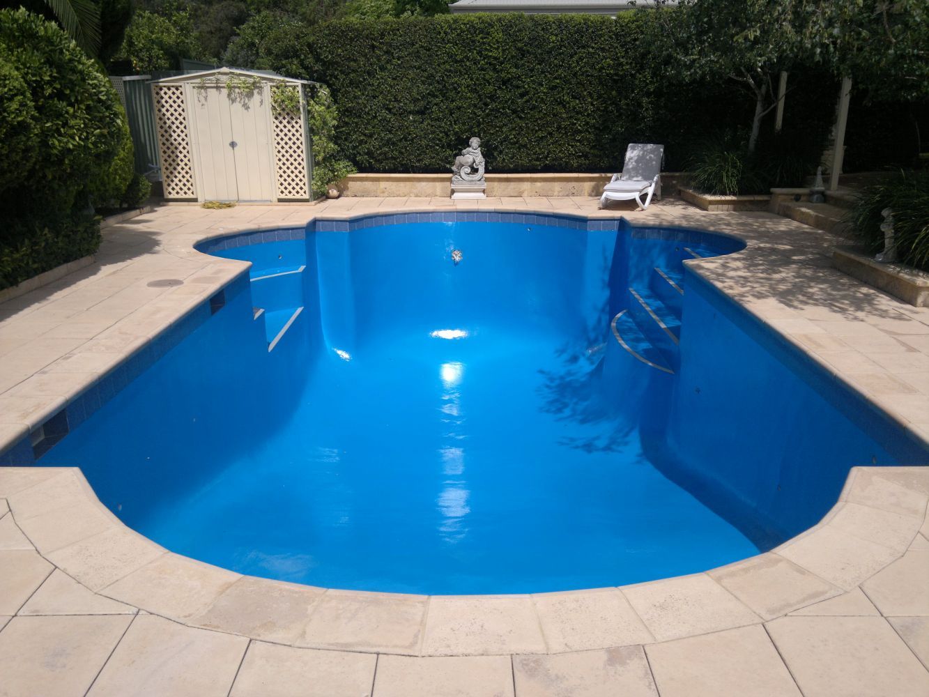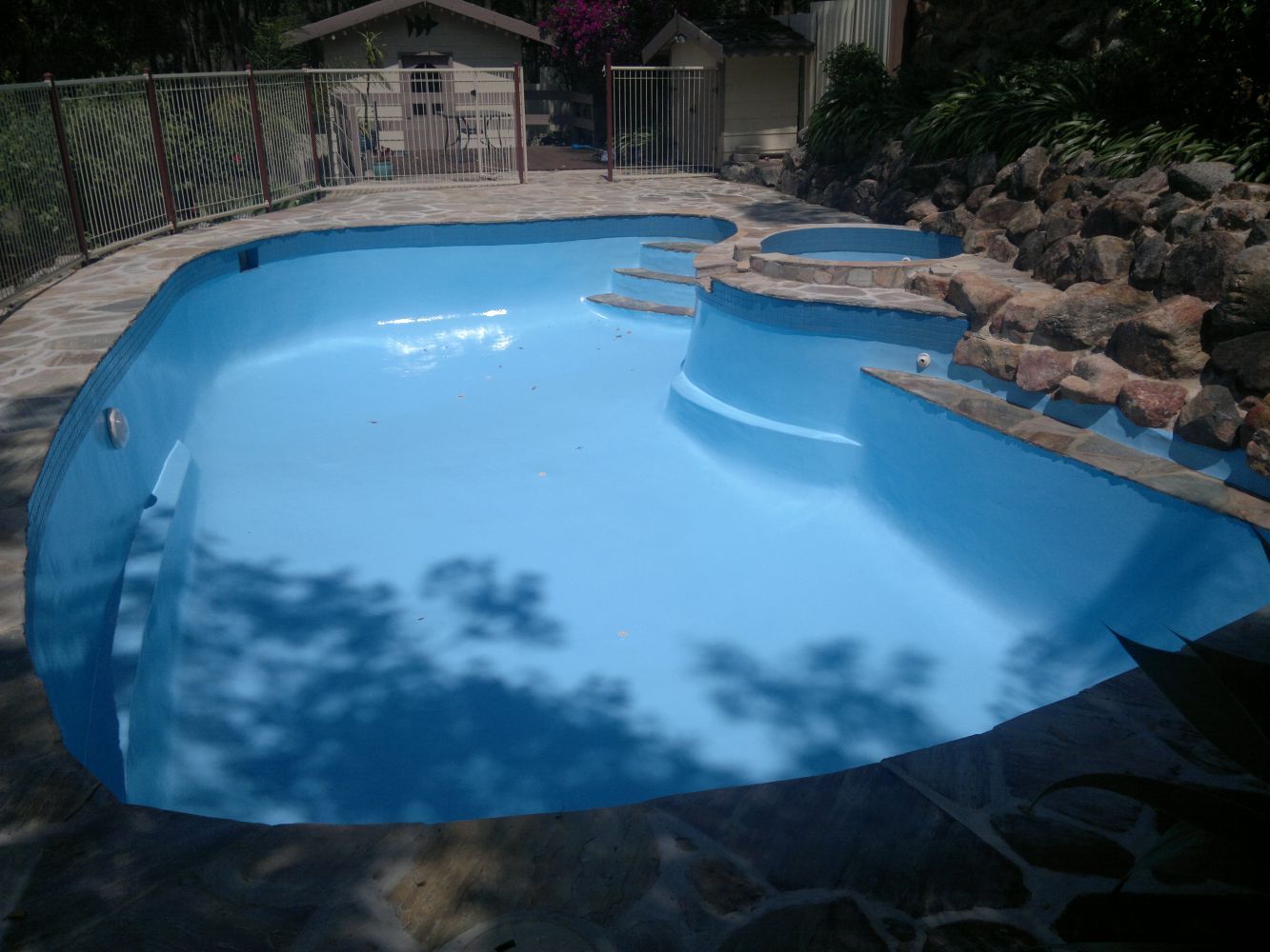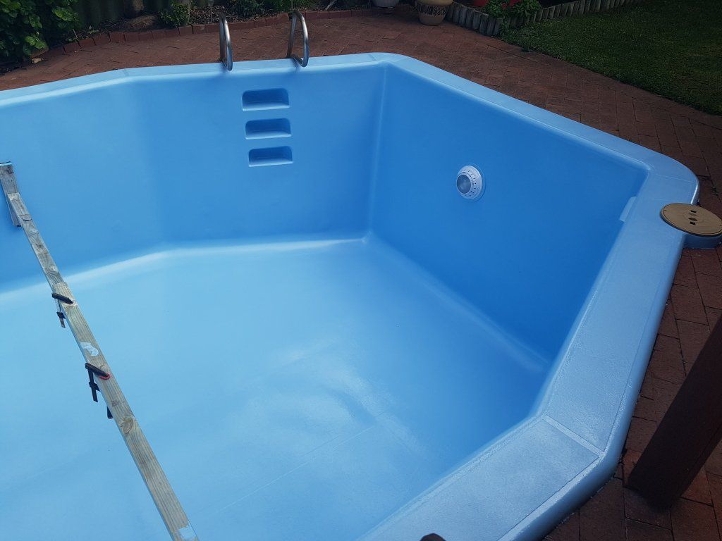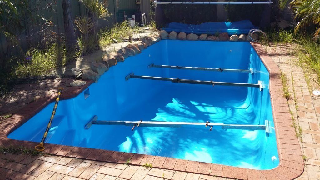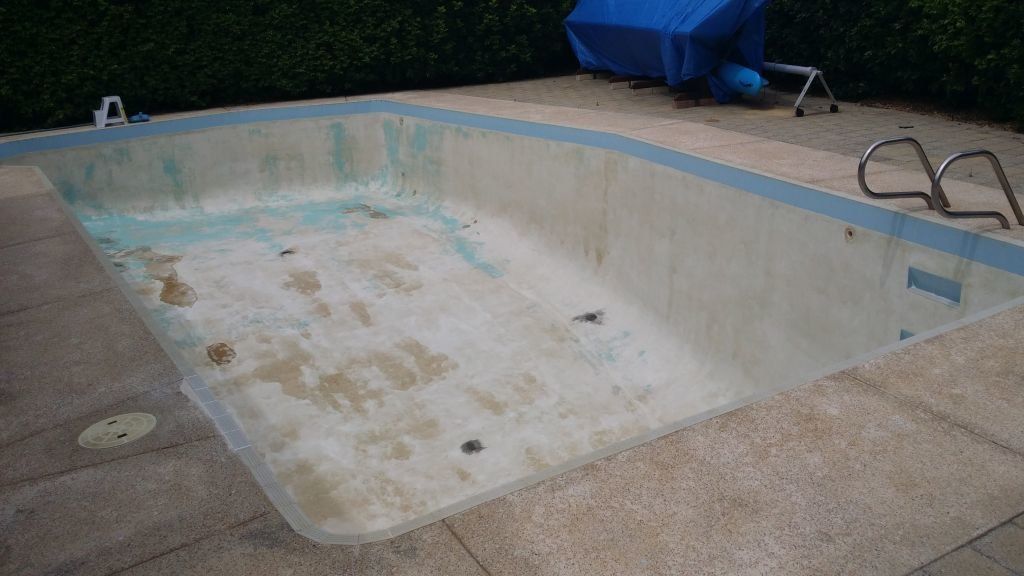 This pool was unused for six years. We bought it back to new condition & coated the pool in Pacific Blue.