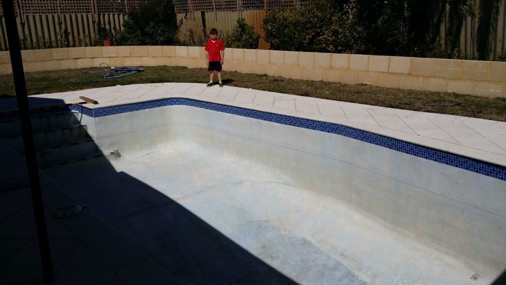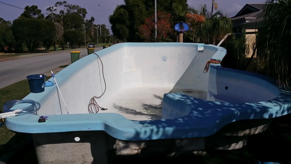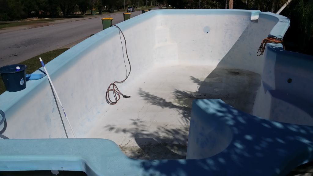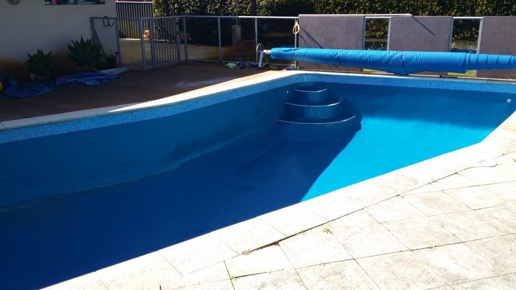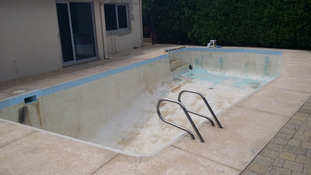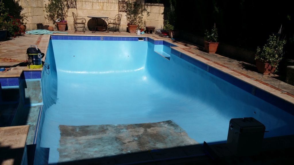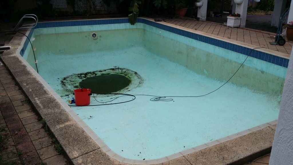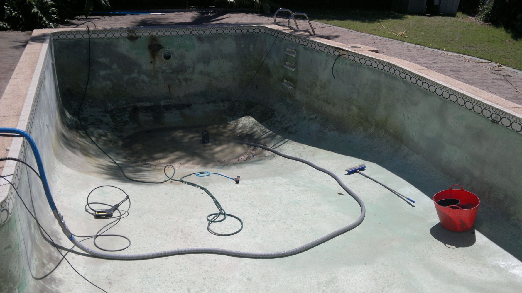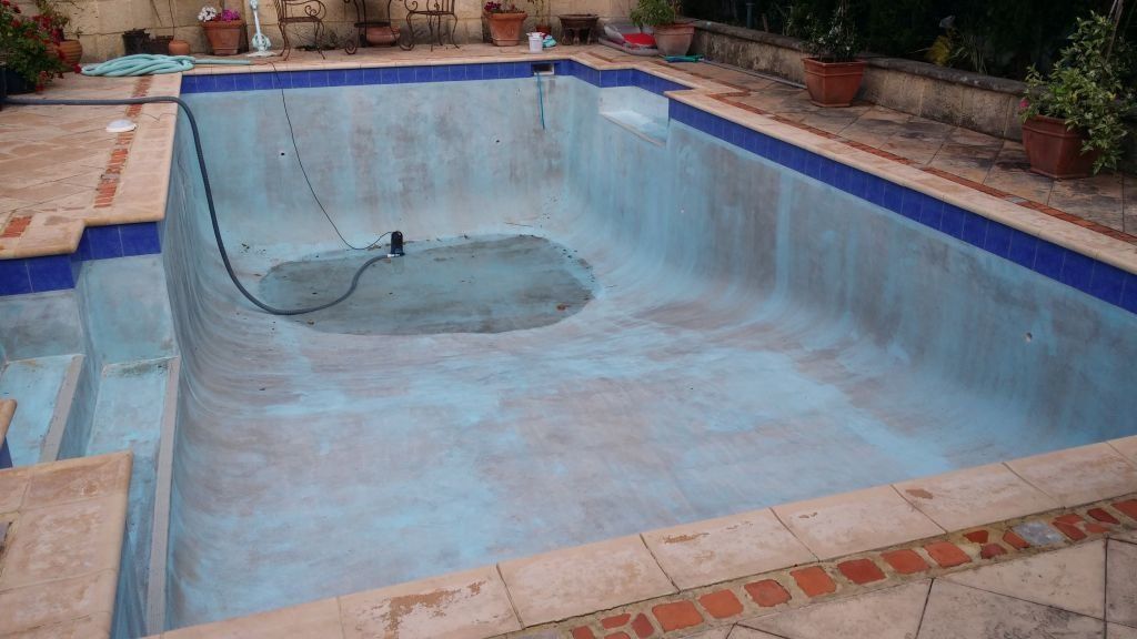 This pool was unused for six years. We bought it back to new condition & coated the pool in Pacific Blue.
