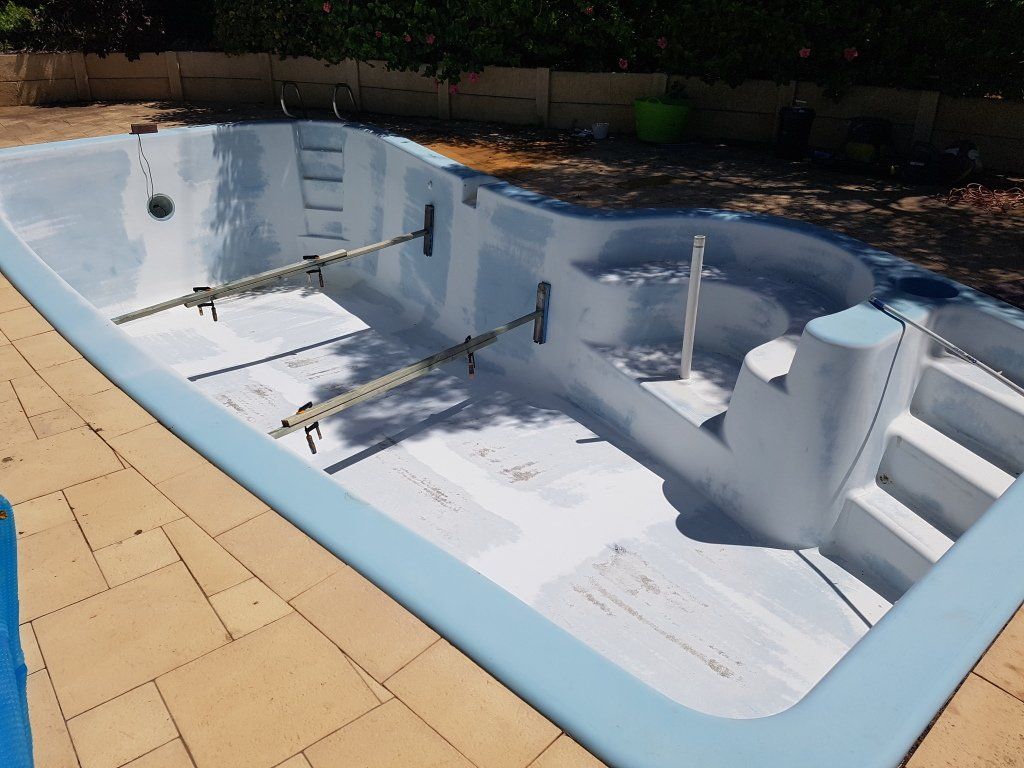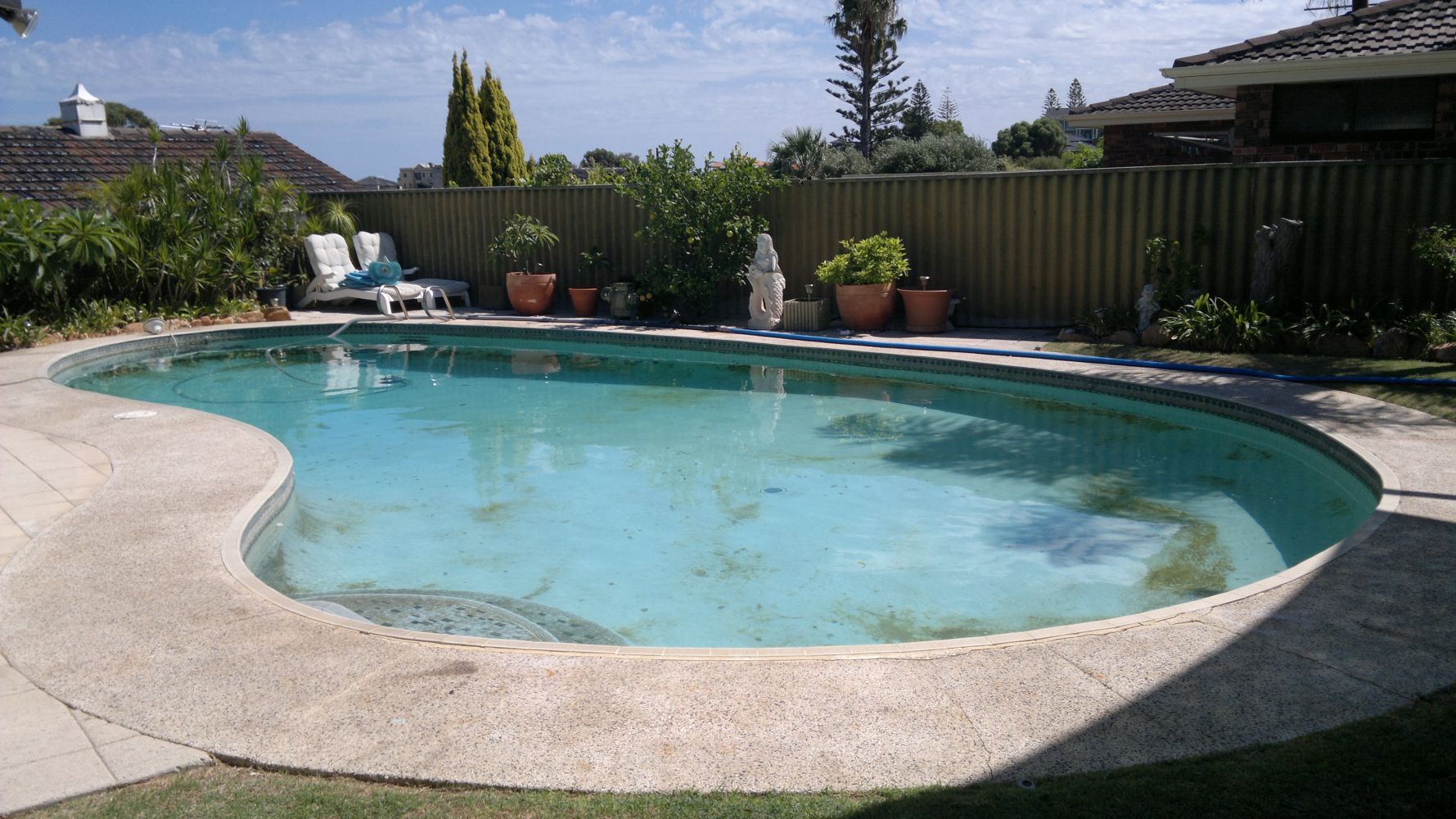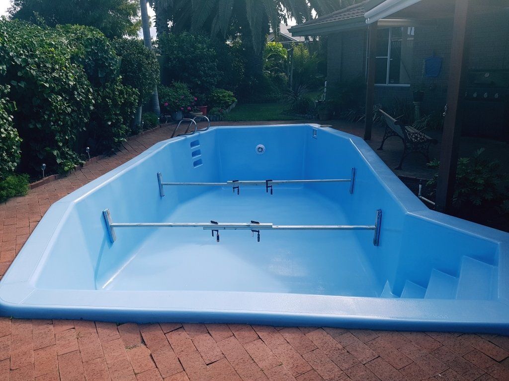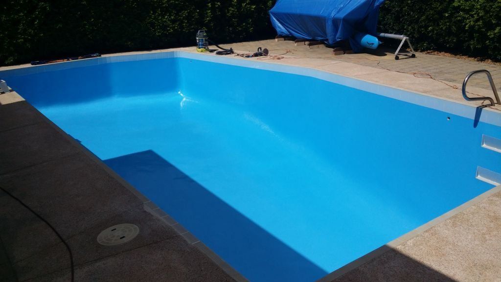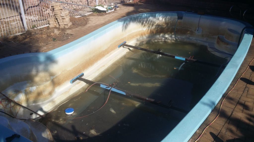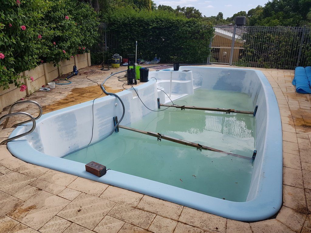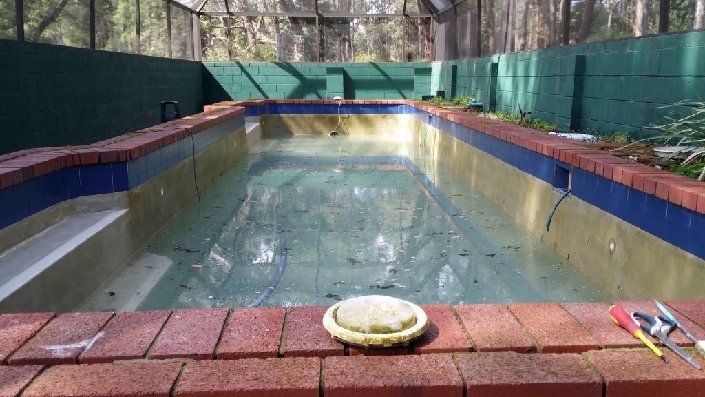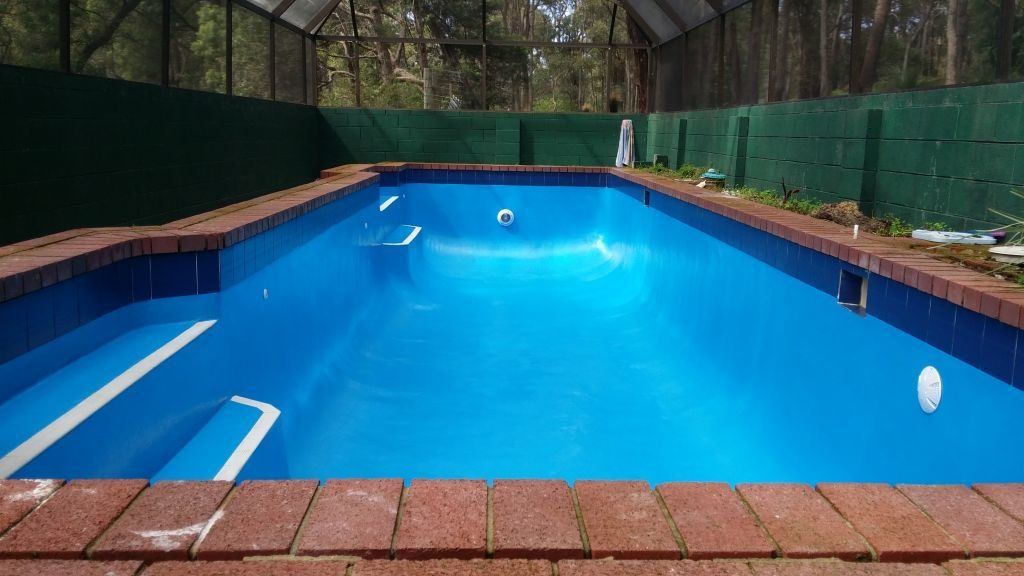 This pool was unused for six years. We bought it back to new condition & coated the pool in Pacific Blue.