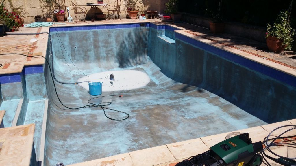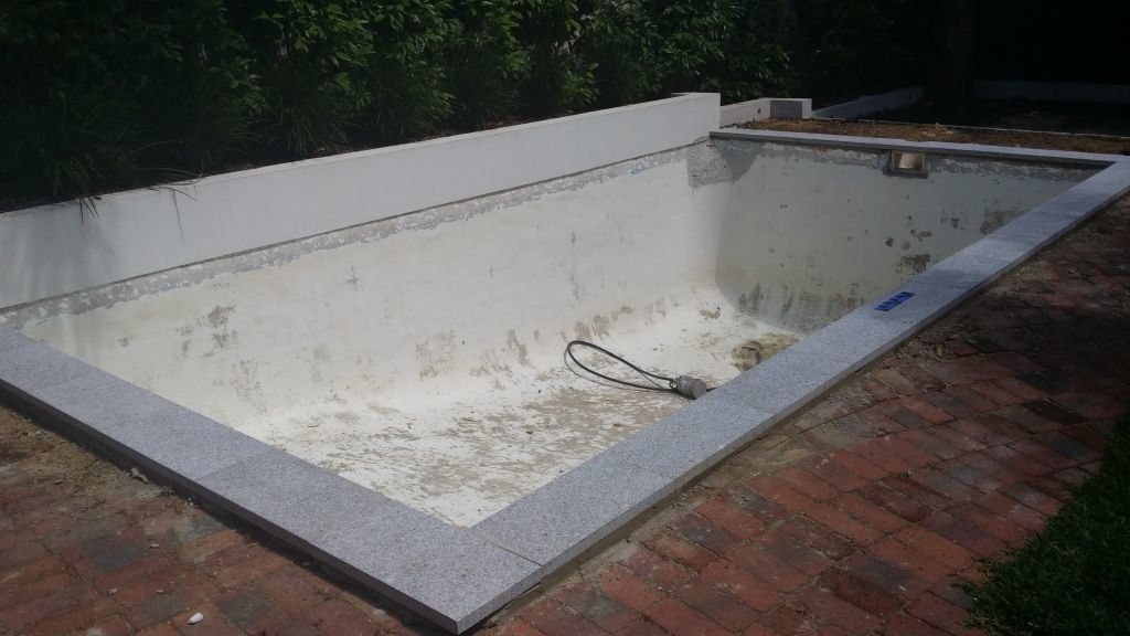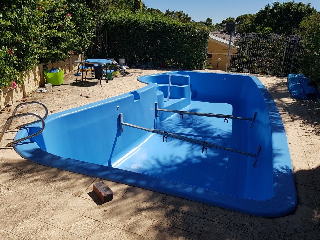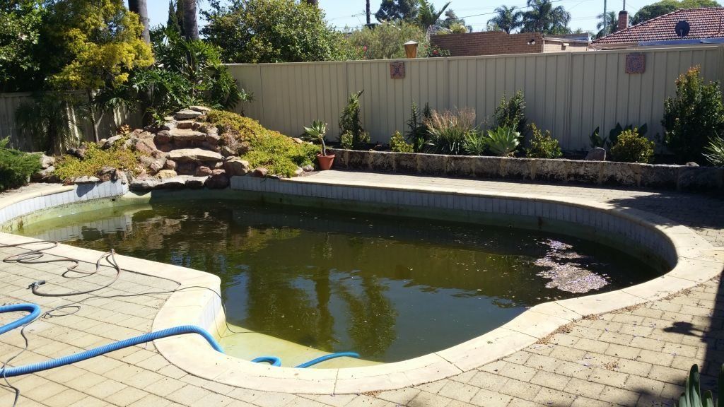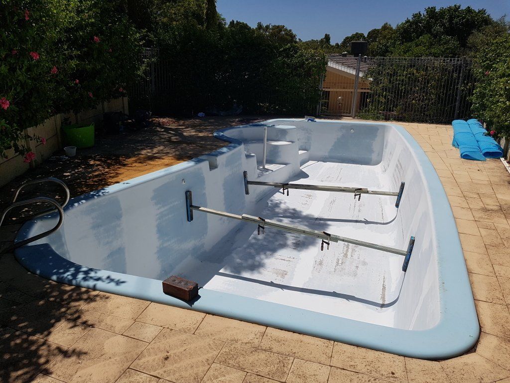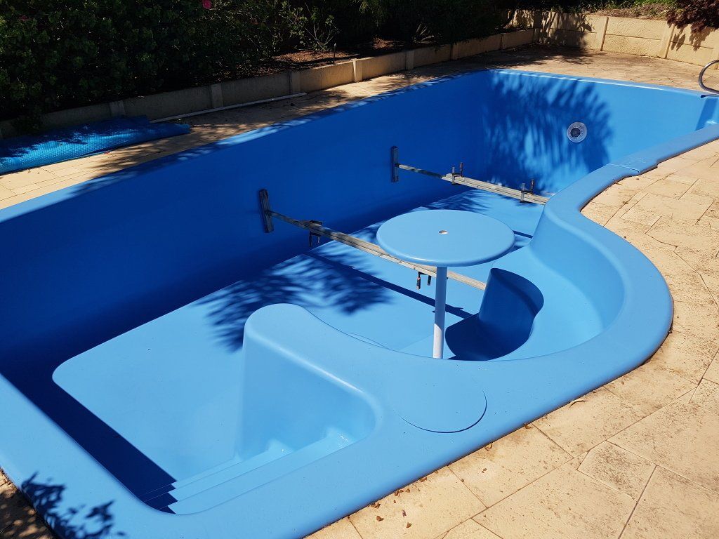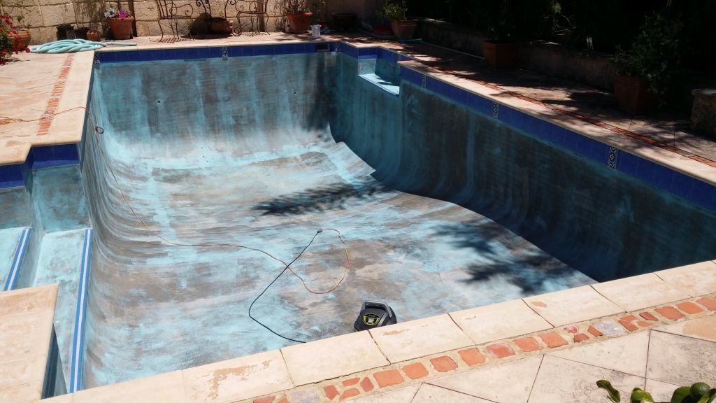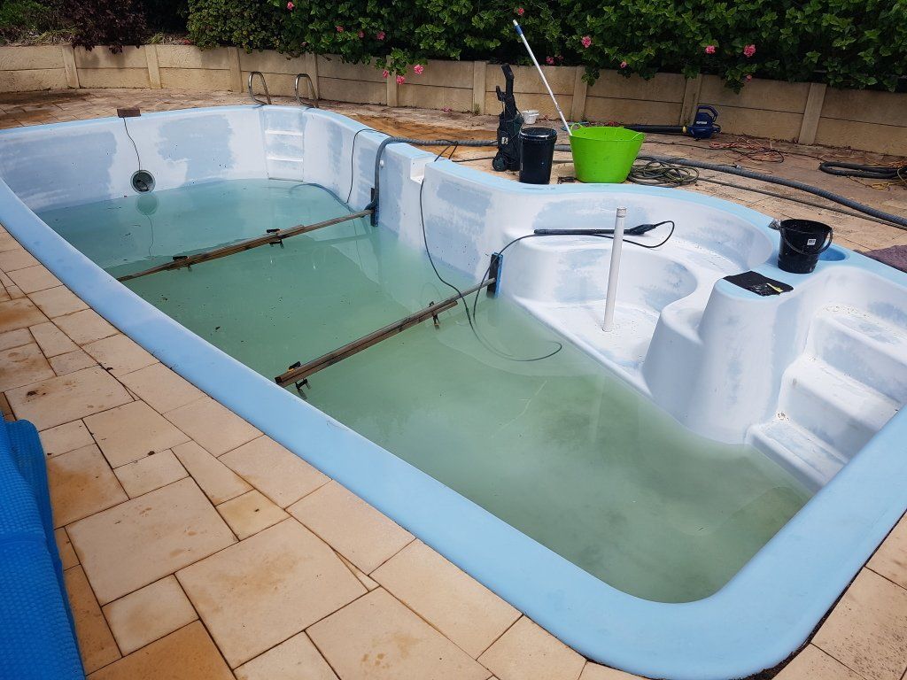 This pool was unused for six years. We bought it back to new condition & coated the pool in Pacific Blue.