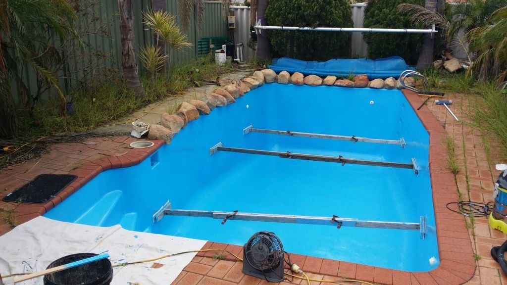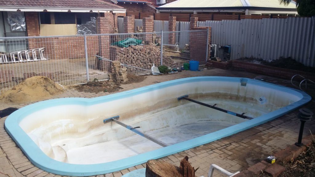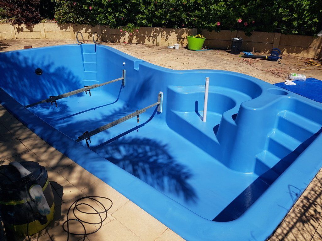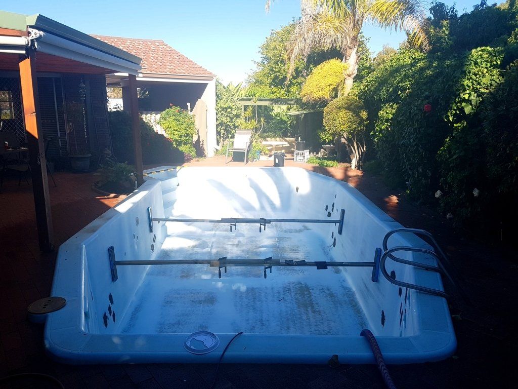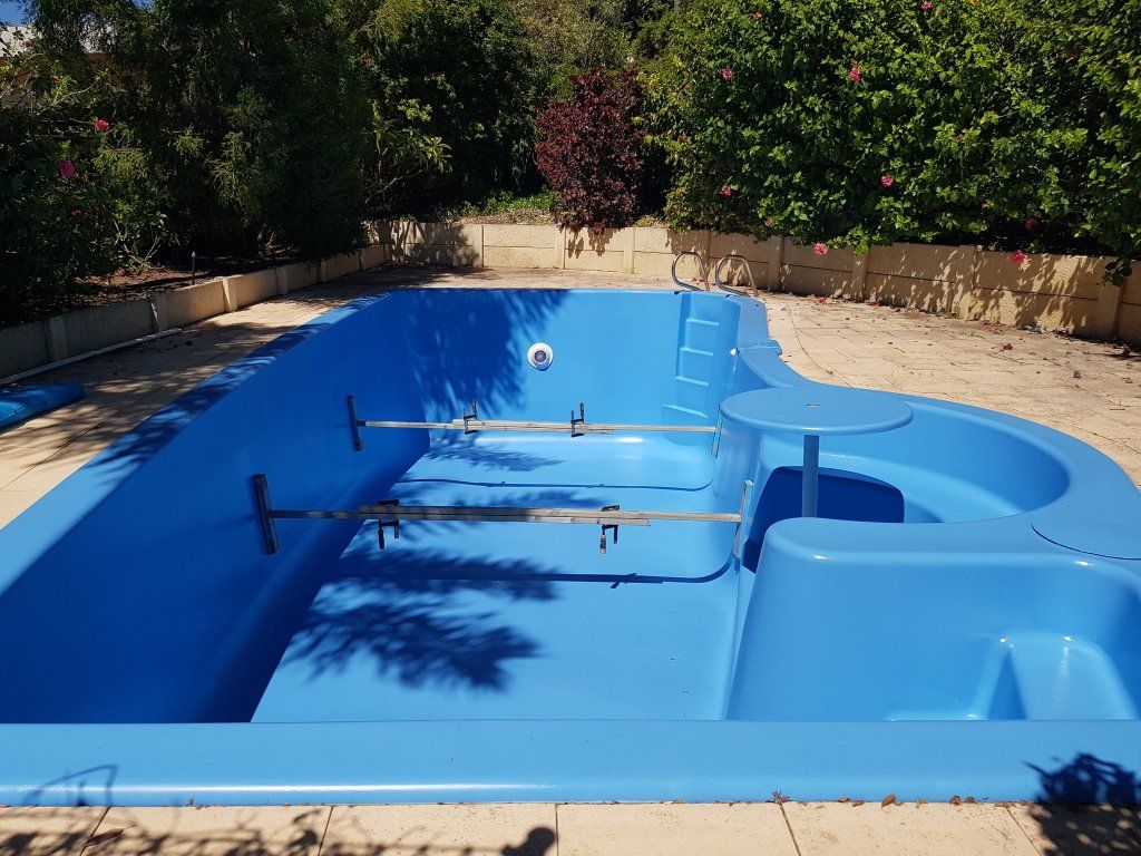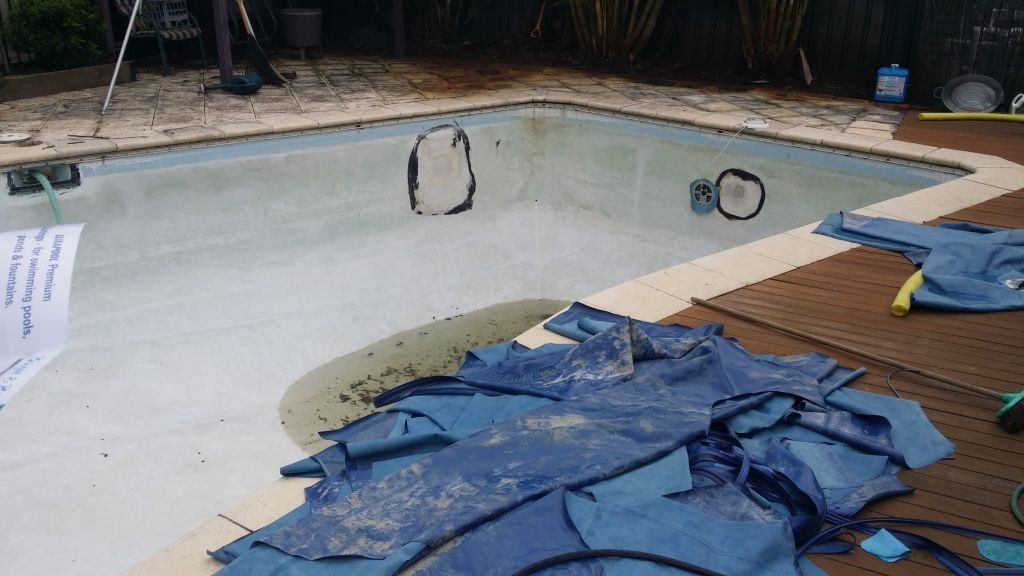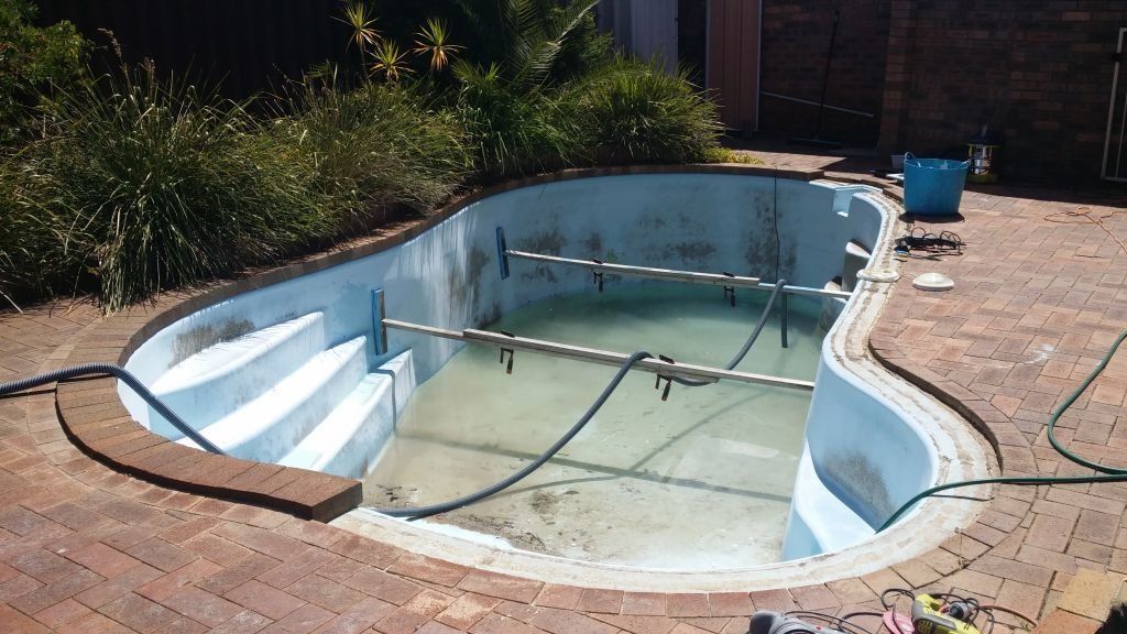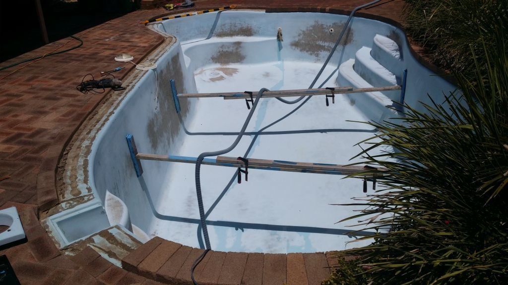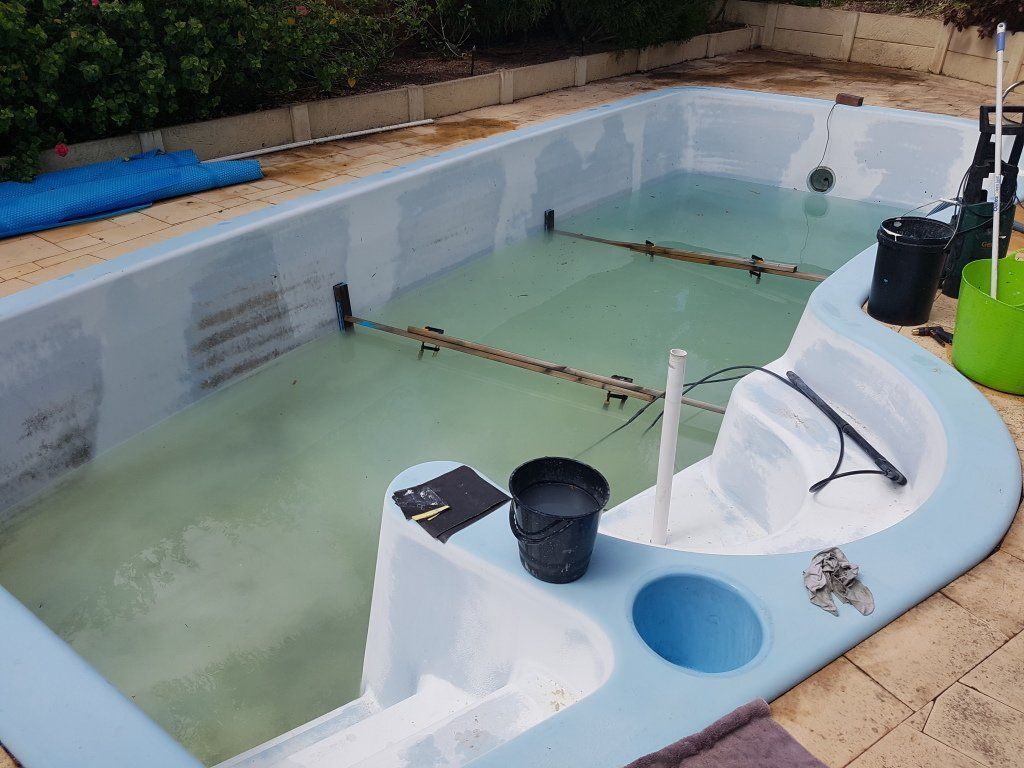 This pool was unused for six years. We bought it back to new condition & coated the pool in Pacific Blue.