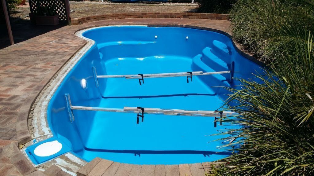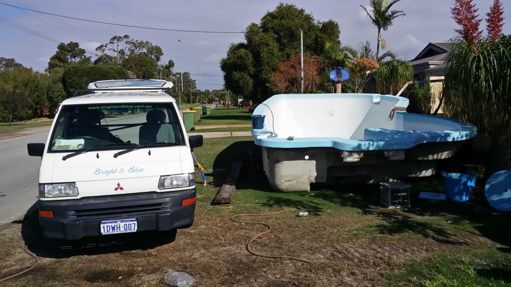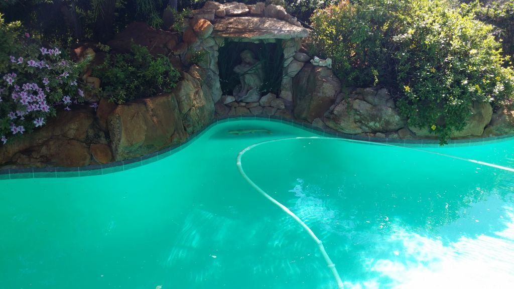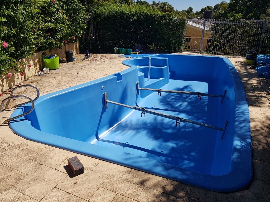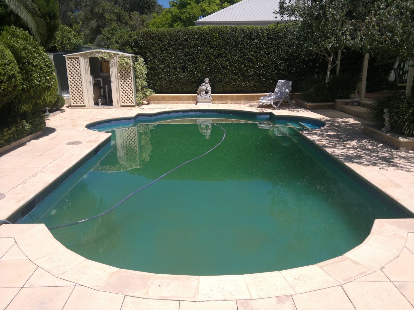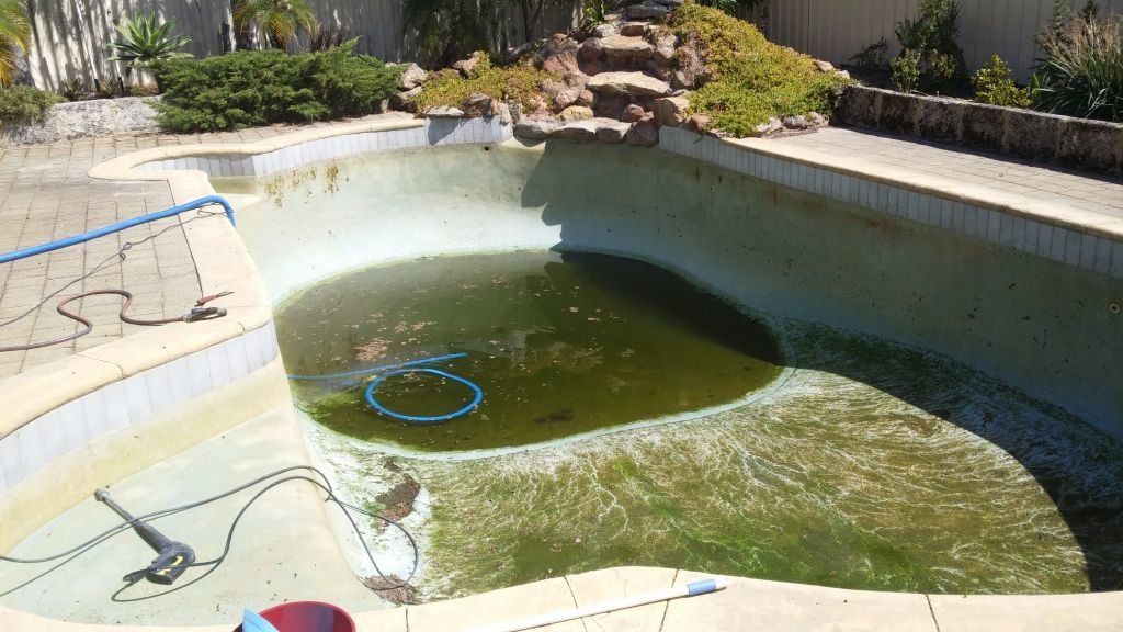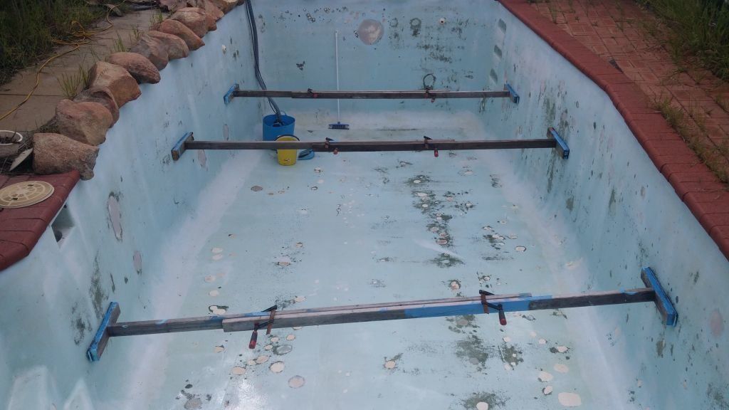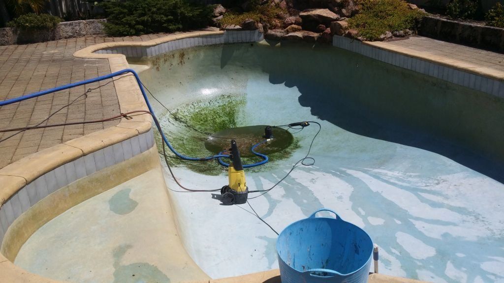 This pool was unused for six years. We bought it back to new condition & coated the pool in Pacific Blue.